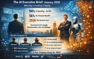 The AI Executive Brief: January 2026 What Big Consulting Is Saying A synthesis of AI insights from Bain, BCG, Deloitte, EY, McKinsey, and PwC β January 2026 Companies are doubling…